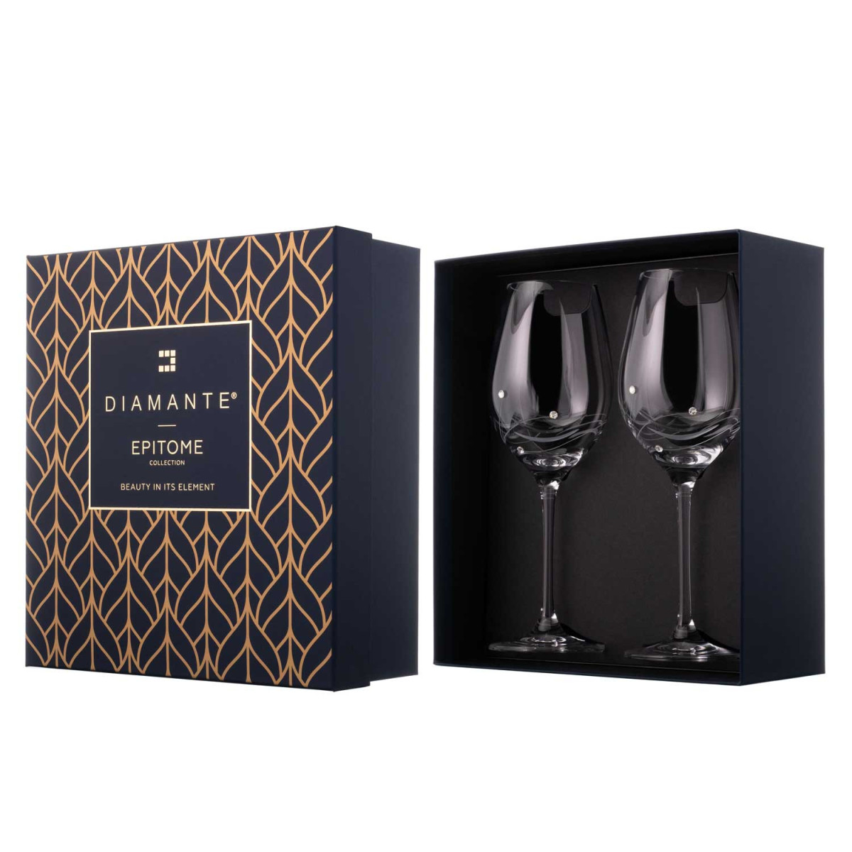 684,71 Kč 556,67 Kč bez DPHDvě velké sklenice na víno o obsahu 470ml. Zdobené s broušenou spirálou a zdobené s pravými Swarovski® kamínky. Určeno pro každodenní použití.