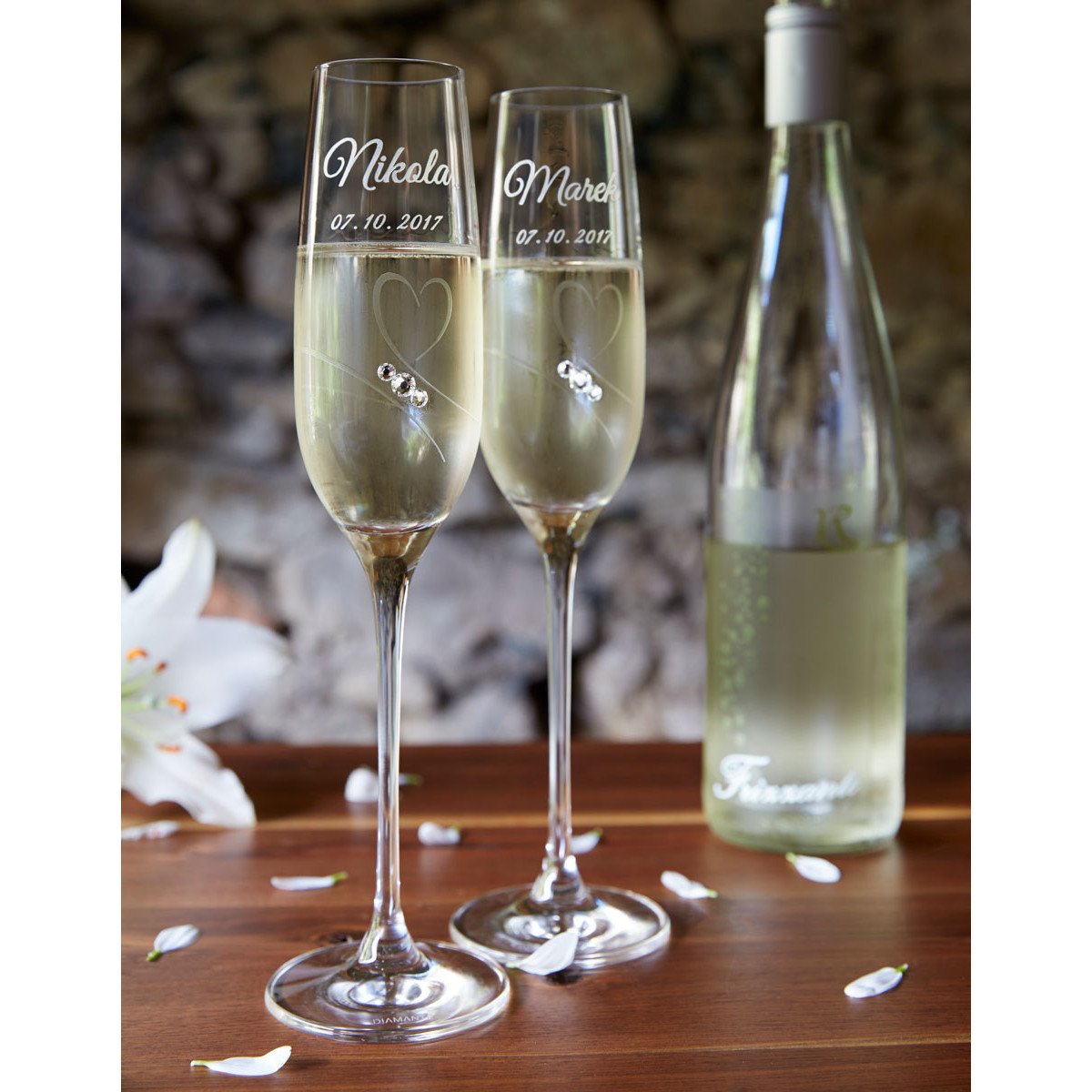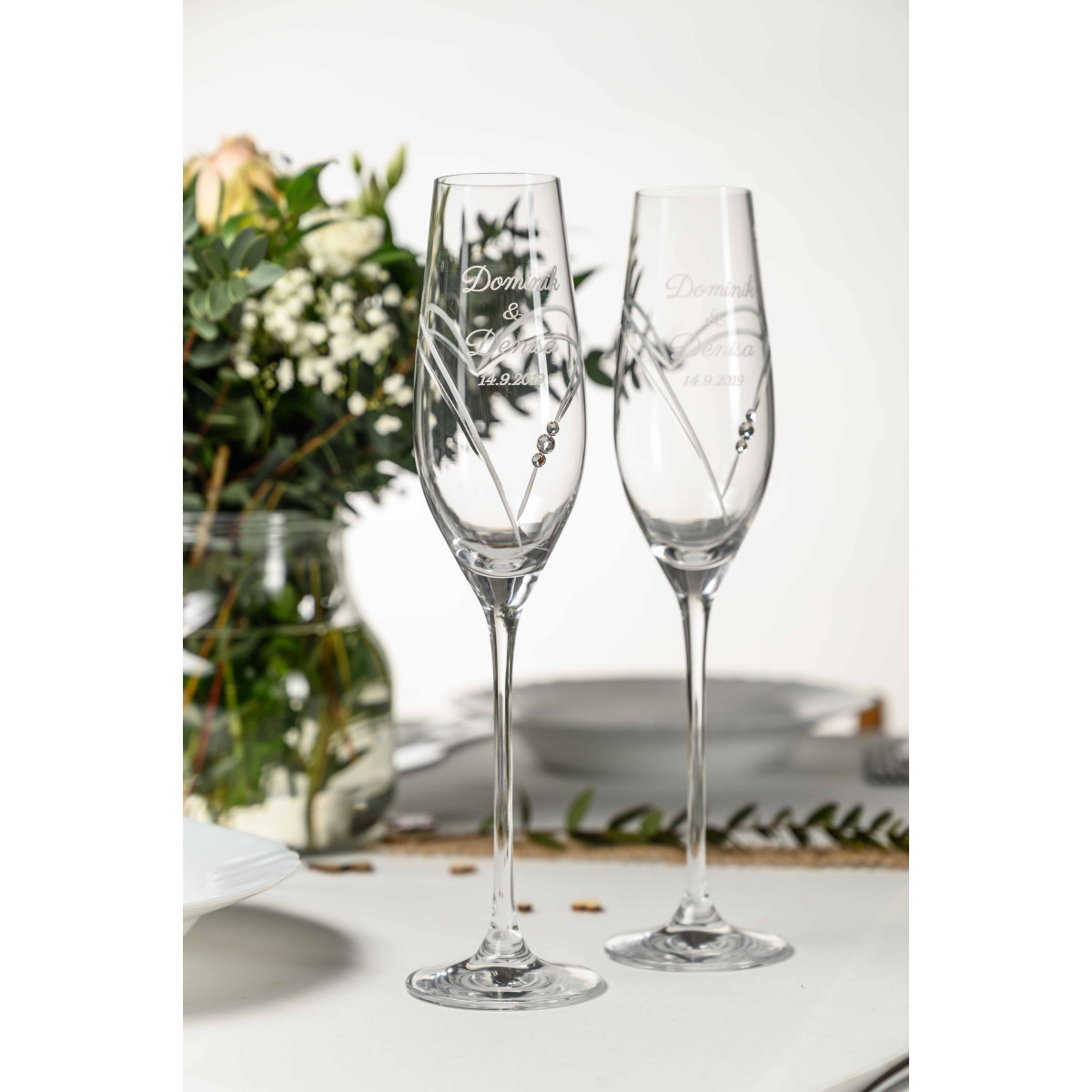 Dva Hearts svatební sklenice na šampaňské - včetně gravírování písmem Parisienne