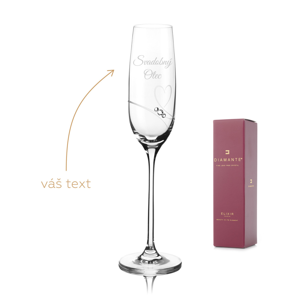 Romance svatební sklenice na šampaňské se srdcem – gravírovaná pro rodiče
