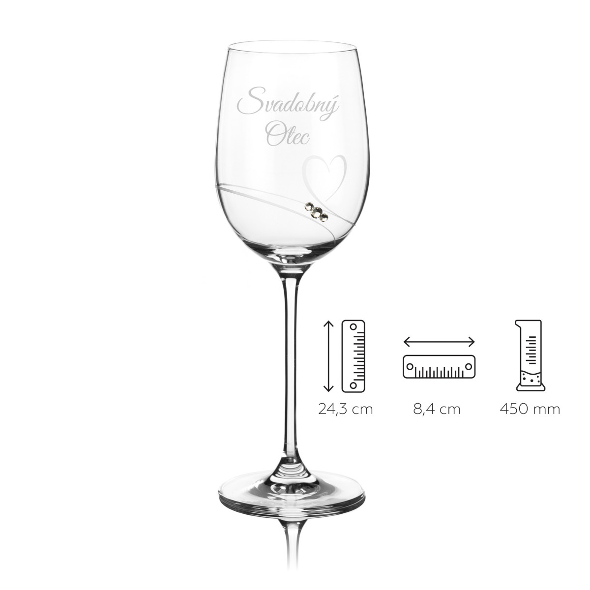 (1)456,47 Kč 371,11 Kč bez DPHElegantní svatební sklenice na bílé víno zdobená broušeným srdcem a Swarovski kamínky. V ceně je gravírování textu pro svatební rodiče – originální dárek na.
