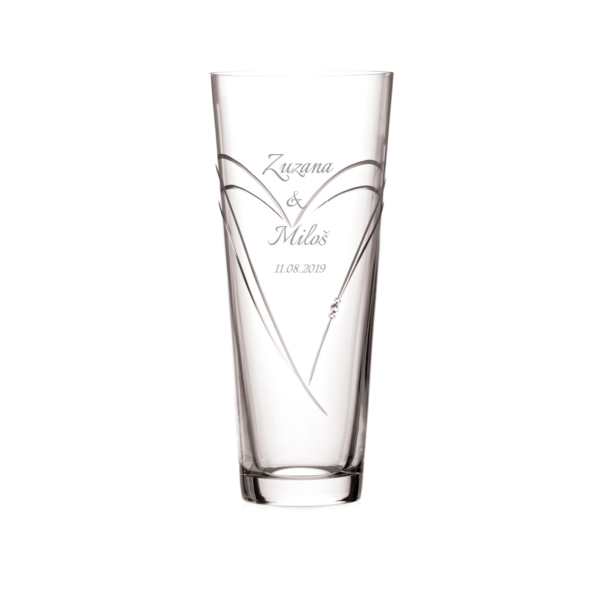 Romance - 25cm váza pre svadobnú kyticu s gravírovaním