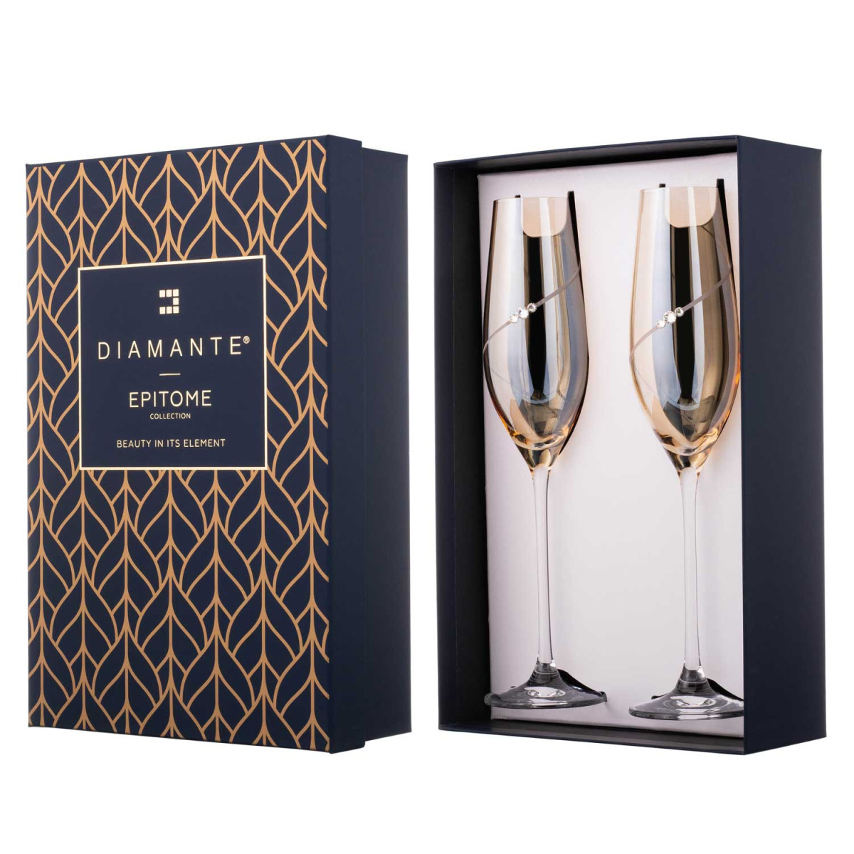 Pár elegantnýcy svadobných pohárov vo Vintage štýle s Crystals by Swarovkski. Cena obsahuje dva poháre s gravírovaním zabalené v elegantnej krabičke ´Diamante Elixir´.